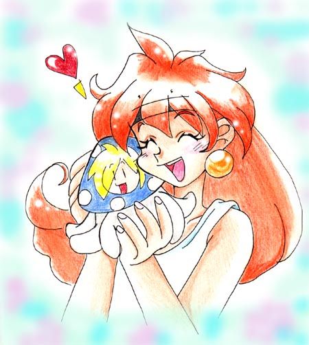 A lovely, original fanart of Lina hugging a Gourry/jellyfish plushie! XD |